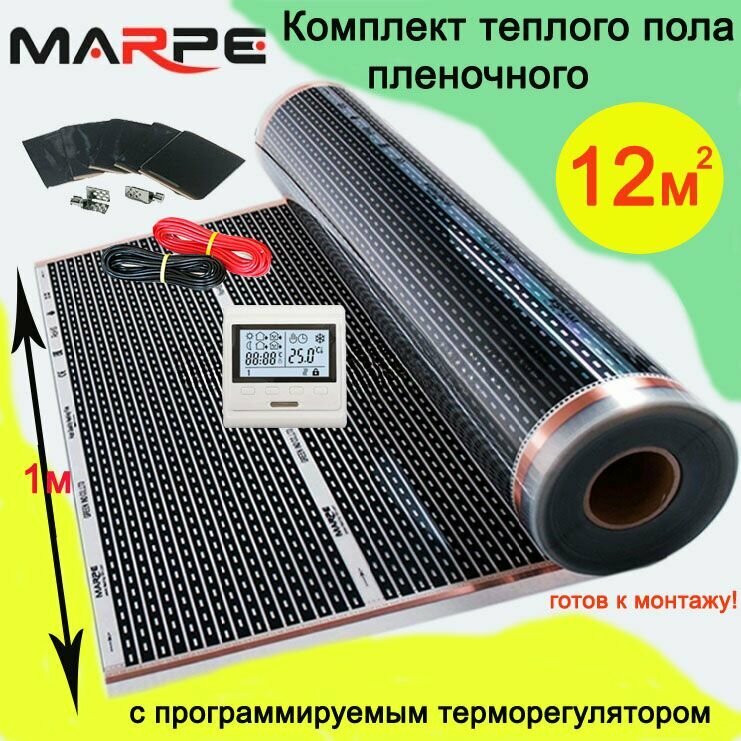 Пленочный теплый пол 12 м. кв. с программируемым терморегулятором, ширина 100 см: сравнение цен, характеристики, фото, актуальное наличие и цены.