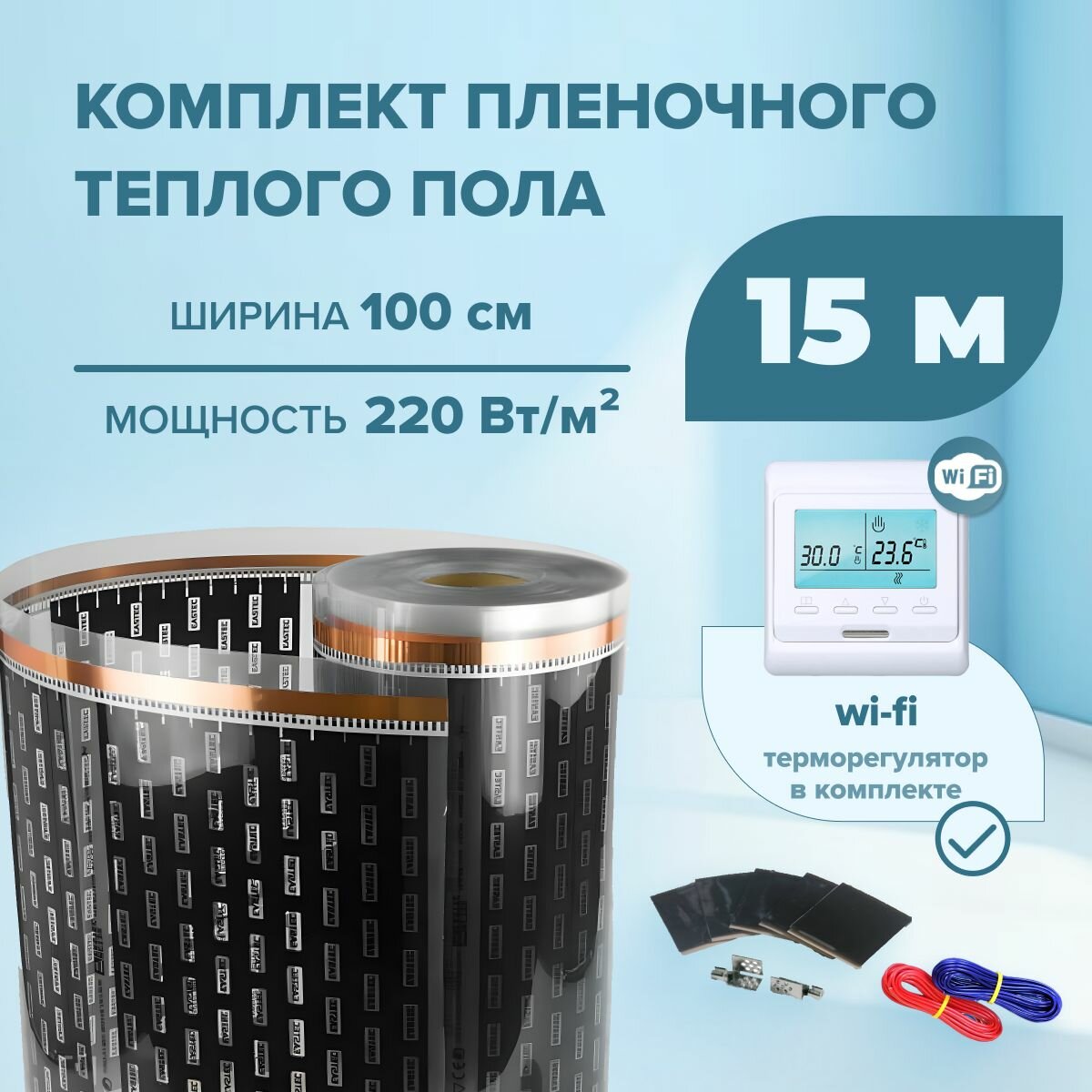 Пленочный теплый пол 15 м. кв. EASTEC ширина 100см комплект с Wi-Fi терморегулятором: сравнение цен, характеристики, фото, актуальное наличие и цены.