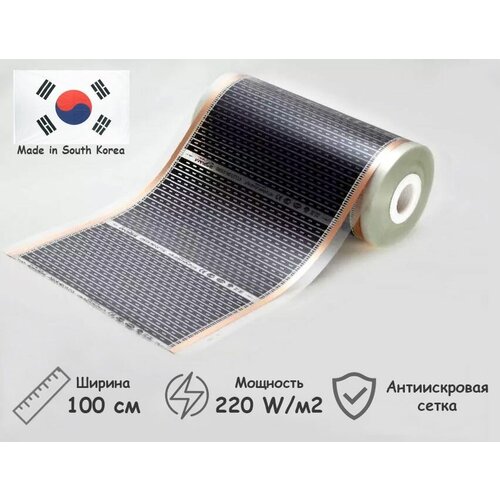 Инфракрасная антиискровая плёнка Marpe для тёплого пола шириной 100 см. Данная плёнка может служить, как основным источником тепла в доме (квартире или даче), так и дополнительным, обогревая отдельные зоны помещения. Плёнка Marpe предназначена для монтажа под: линолеум, ламинат, паркет или ковролин. В качестве нагревательного элемента служит карбоновая паста с добавлением углеродных нанотрубок – поистине революционный материал нашего века, при мизерном добавлении в основное вещество оказывающий сильное влияние на равномерную проводимость, равномерный нагрев, усиление адгезии к базовому слою, повышение прочности, в том числе прочности на многократный изгиб и излом, снижение энергопотребления и многое другое. В структуру карбоновых полос добавлено множество мелких отверстий, заполненных клеевым составом – так называемая «прошивка» пленки. Позволяет повысить прочность инфракрасной пленки и избежать расслоения при возможных электромеханических и температурных перегрузках, улучшить «живучесть» системы Теплый пол в целом