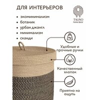 Обратите внимание! Корзина поставляется В сложенном виде! Плетеная корзина для белья - стильная и практичная вещь, которая станет отличным решением для хранения грязного белья. Большая, но при этом компактная, она поместится практически в любой уголок вашей ванной. Материал мягкой хозяйственной корзины изготовлен из натурального плетения 100% хлопка, что придает ей особый шарм и уютный вид, а так же является экологичным и безопасным для природы. Кроме того, она имеет круглую форму, что придает ей особую элегантность. Корзинка для хранения с ручками не только позволяет удобно транспортировать грязную одежду, но также может использоваться для хранения разных вещей. Она идеально подходит для организации хозяйственных принадлежностей в ванной комнате или детской, а также может быть использована как корзина для игрушек. Ее складная конструкция позволяет легко и быстро убрать ее в шкаф, когда она не нужна, освободив тем самым дополнительное пространство. Бельевая корзина - это не просто предмет интерьера, она помогает нам организовать нашу жизнь. Удобные ручки позволяют легко перемещать ее из места в место. При этом, ее прочность и надежность гарантируют долгий срок службы. Мало того, она даже может стать отличным дополнением вашего интерьера, добавив немного стиля и шарма. Обратите внимание! Бак для грязного белья поставляется в сложенном виде.