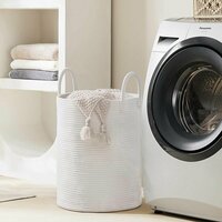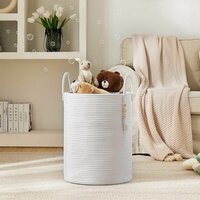 Она прекрасно подойдет для хранения грязного белья, а также чистого белья в ванной или спальне. Благодаря своей удобной форме, эта круглая корзина идеально вписывается в гардеробную или детскую комнату, где требуется сортировка игрушек и вещей. Если вам нужно место для пледов или полотенец, наш товар станет надежным помощником в этом вопросе.