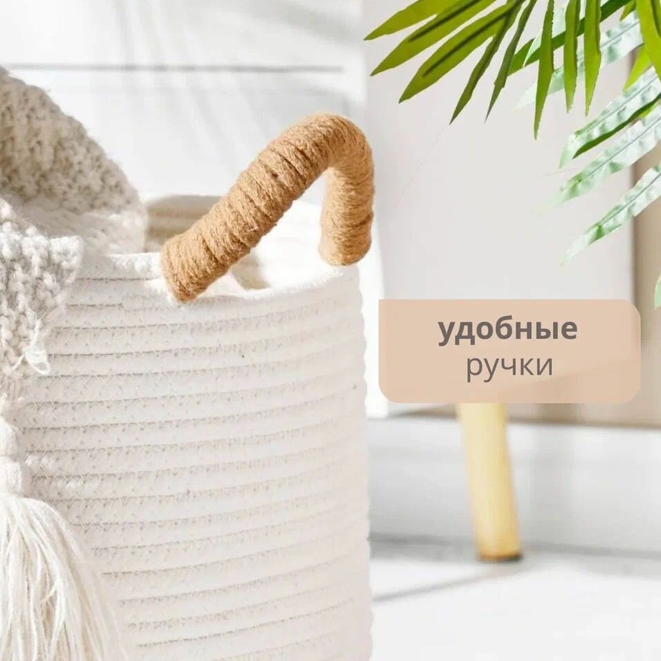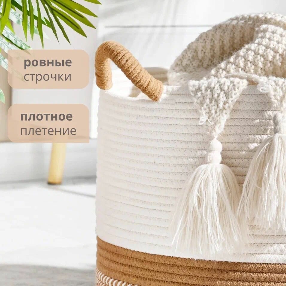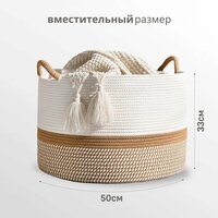 Наша плетеная корзина для белья и игрушек имеет элегантный дизайн, который добавит уют и шарм в любой интерьер. Она выполнена из 100% хлопка, что делает ее экологически безопасной для детей. Эта корзина идеально подходит для хранения игрушек, позволяя сохранить порядок и легко найти нужную игрушку в любой момент. У нее есть прочные и удобные ручки, которые позволяют легко перемещать ее в нужное место.