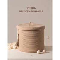 Эта текстильная корзина прекрасно подходит для хранения игрушек, детских вещей, грязного белья и полотенец. Ее большая вместимость позволяет хранить пледы и многое другое, а складная конструкция обеспечивает компактность при необходимости. Плетеная емкость с крышкой не только функциональна, но и добавляет уют вашему дому. Идеально подходит в интерьеры в стиле Pinterest. Пинтерест это стиль.