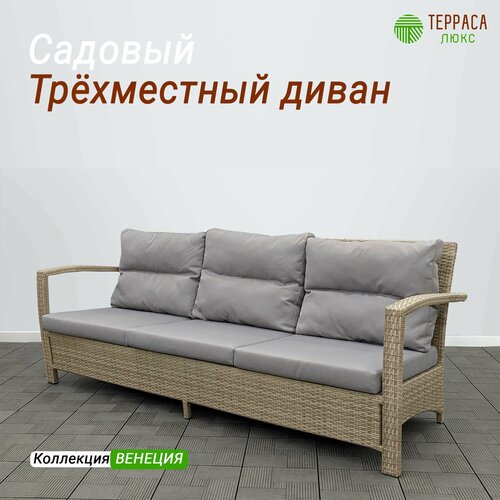 Представляем вашему вниманию стильный и комфортный плетенный диван на три места, идеально подходящий для вашего сада или террасы. Изготовленный из высококачественного искусственного ротанга, этот диван станет ярким акцентом вашего пространства и обеспечит уют для семьи и друзей. Благодаря своему современному дизайну он легко вписывается в любые ландшафтные решения и создает атмосферу расслабления и отдыха.