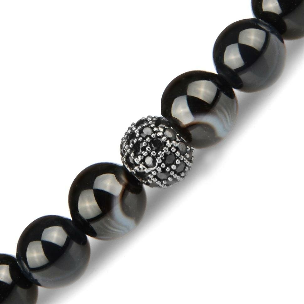 Плетеный браслет Everiot, оникс, фианит, размер 16 см, черный