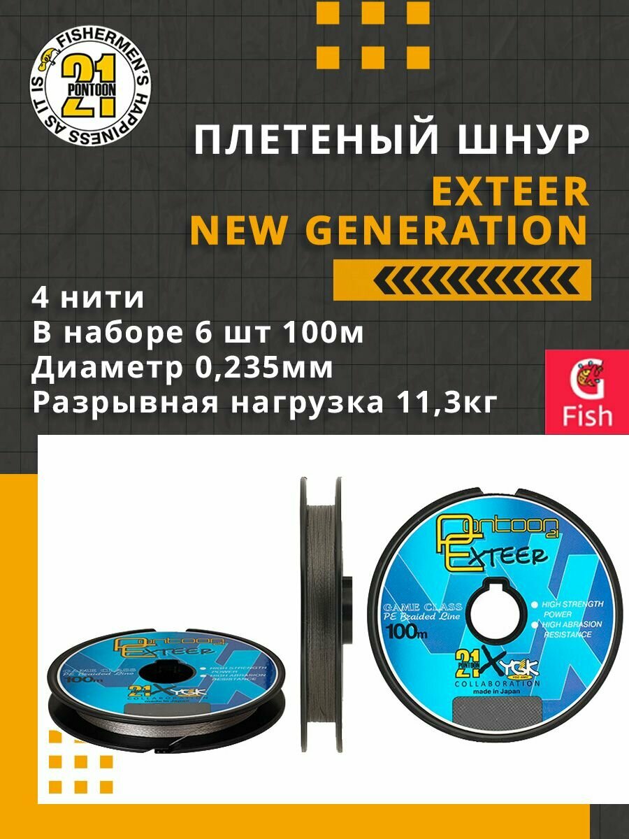Плетеный шнур для рыбалки Pontoon21 Exteer New Generation 0,235 мм (серый), размотка — 6 шт по 100м, разрывная нагрузка(кг) 11,3, нитей 4: сравнение цен, характеристики, фото, актуальное наличие и цены.