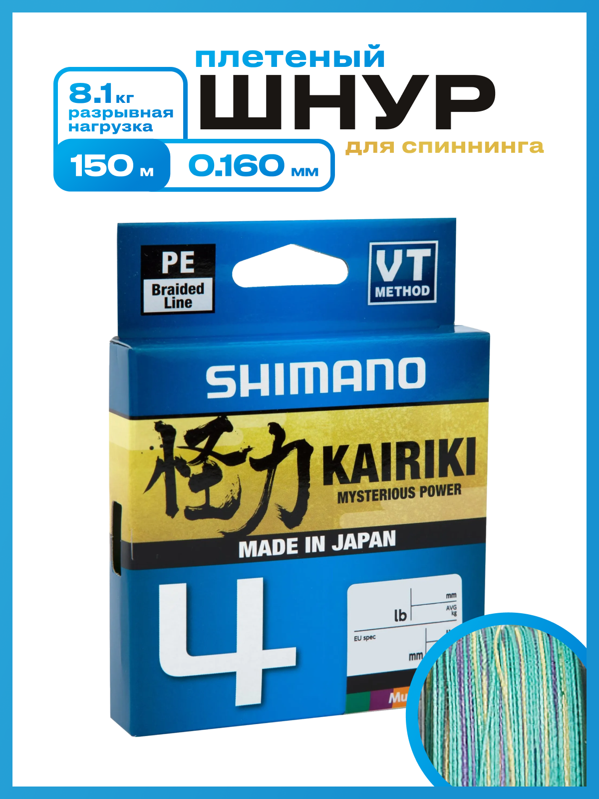Новая нить плетенка Shimano Kairiki 4 для спиннинга — это обновленный 4-жильный плетеный шнур, изготовленный в Японии по технологии VT construction Method. Это очень прочная полиэтиленовая (PE) нить, превосходная для забросов на дальние расстояния с потрясающей прочностью на разрыв в 8,1 кг.