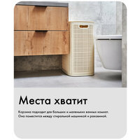Купить Корзина для белья «Лён», Альт-Пласт, 75л, слоновая кость, сборная, пластик с доставкой по всей России.