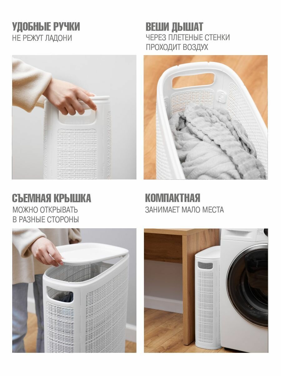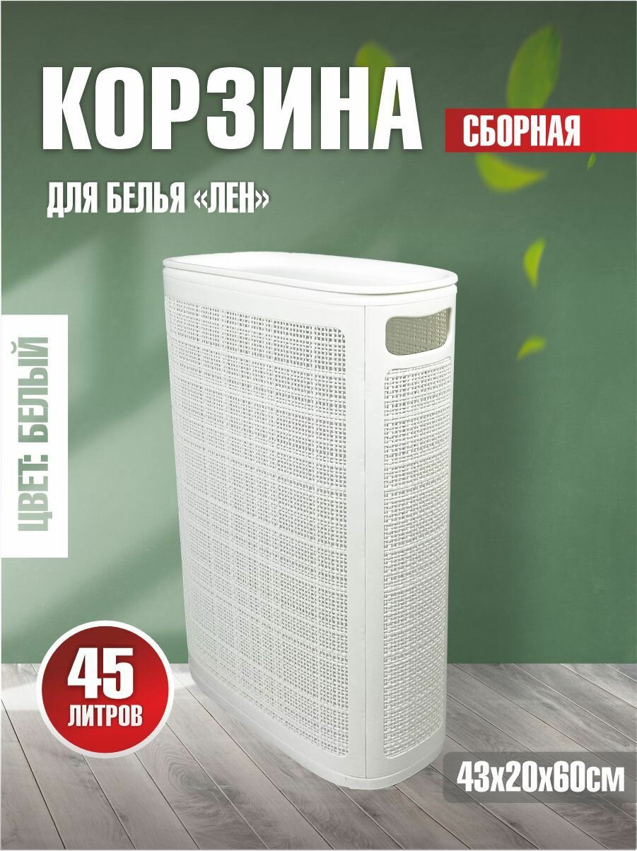 Купить Плетёная корзина для белья сборная узкая «Лён» 45л белый (430х200х600мм) с доставкой по всей России. Плетёная корзина для белья сборная узкая «Лён» 45л белый (430х200х600мм): сравнение цен, характеристики, фото, актуальное наличие и цены.