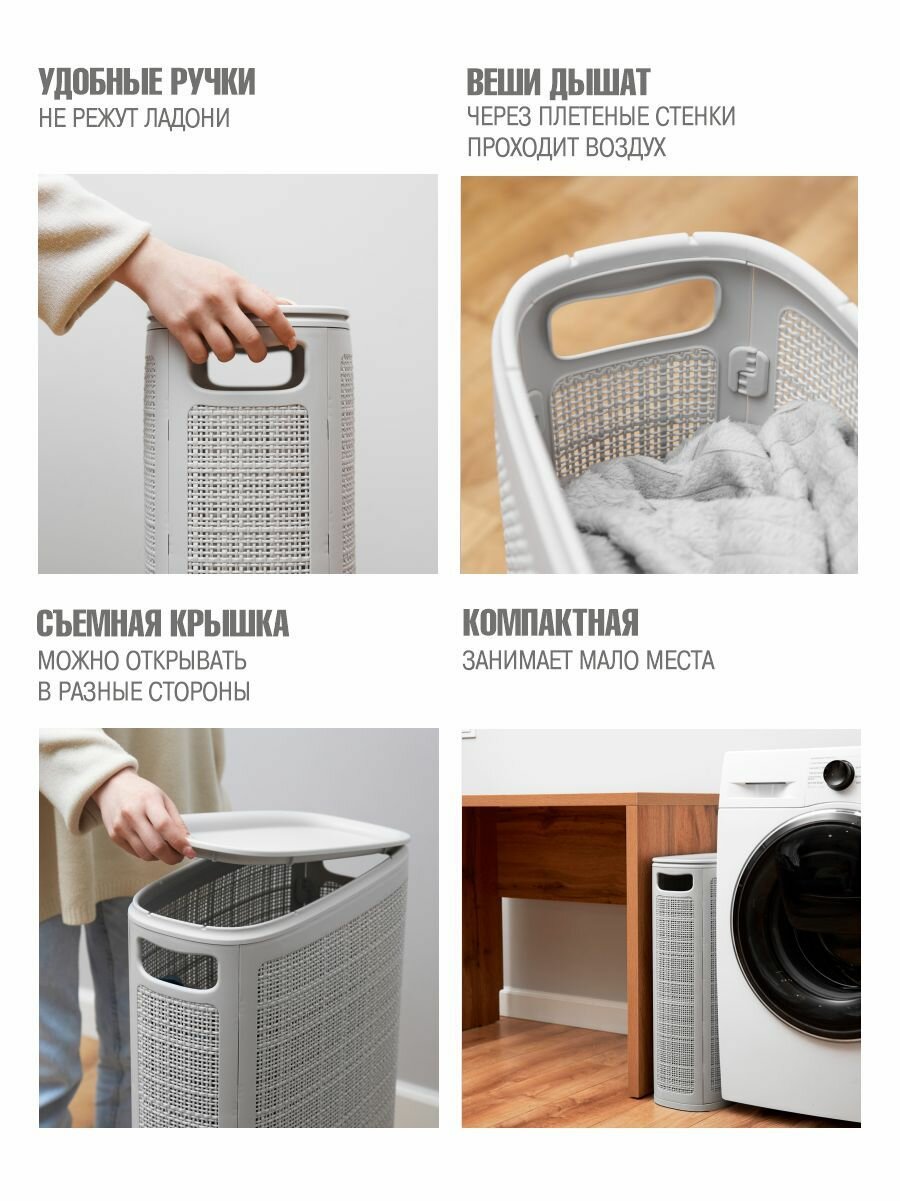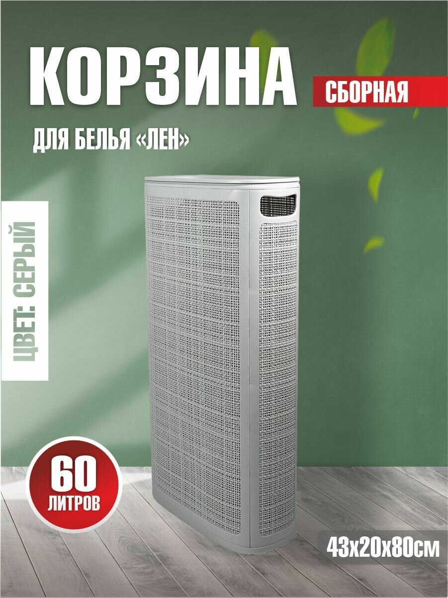 Плетёная корзина для белья сборная узкая «Лён» 60л светло-серый (430х200х800мм): сравнение цен, характеристики, фото, актуальное наличие и цены.