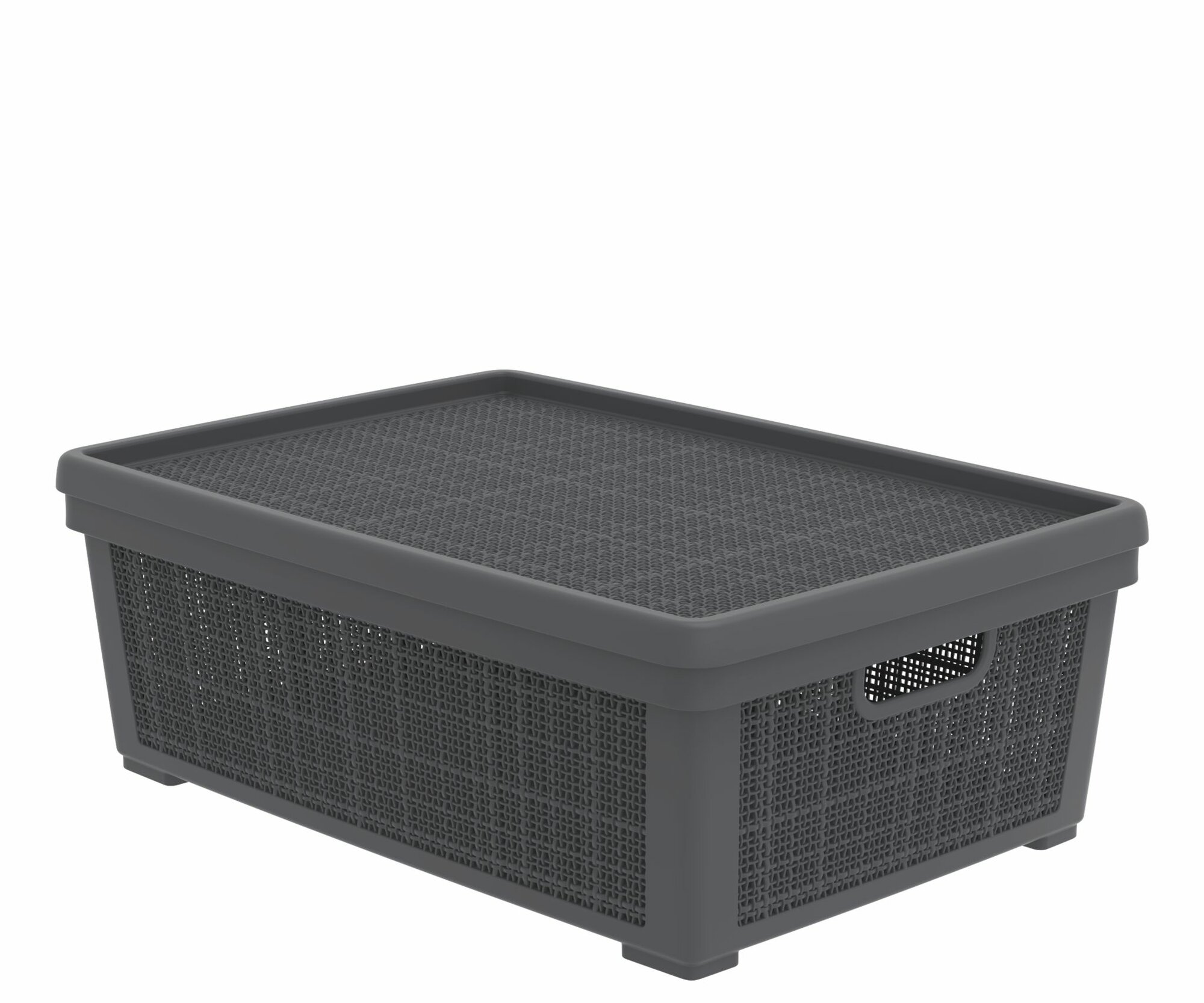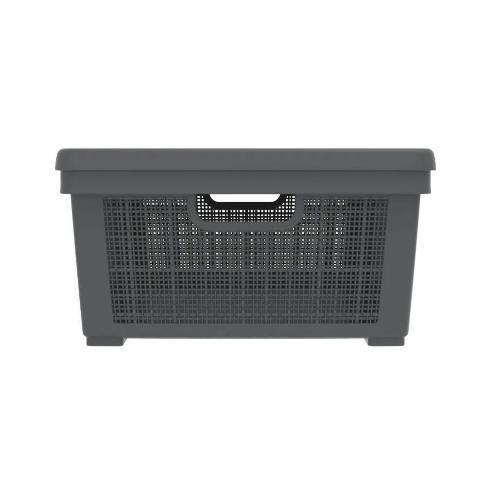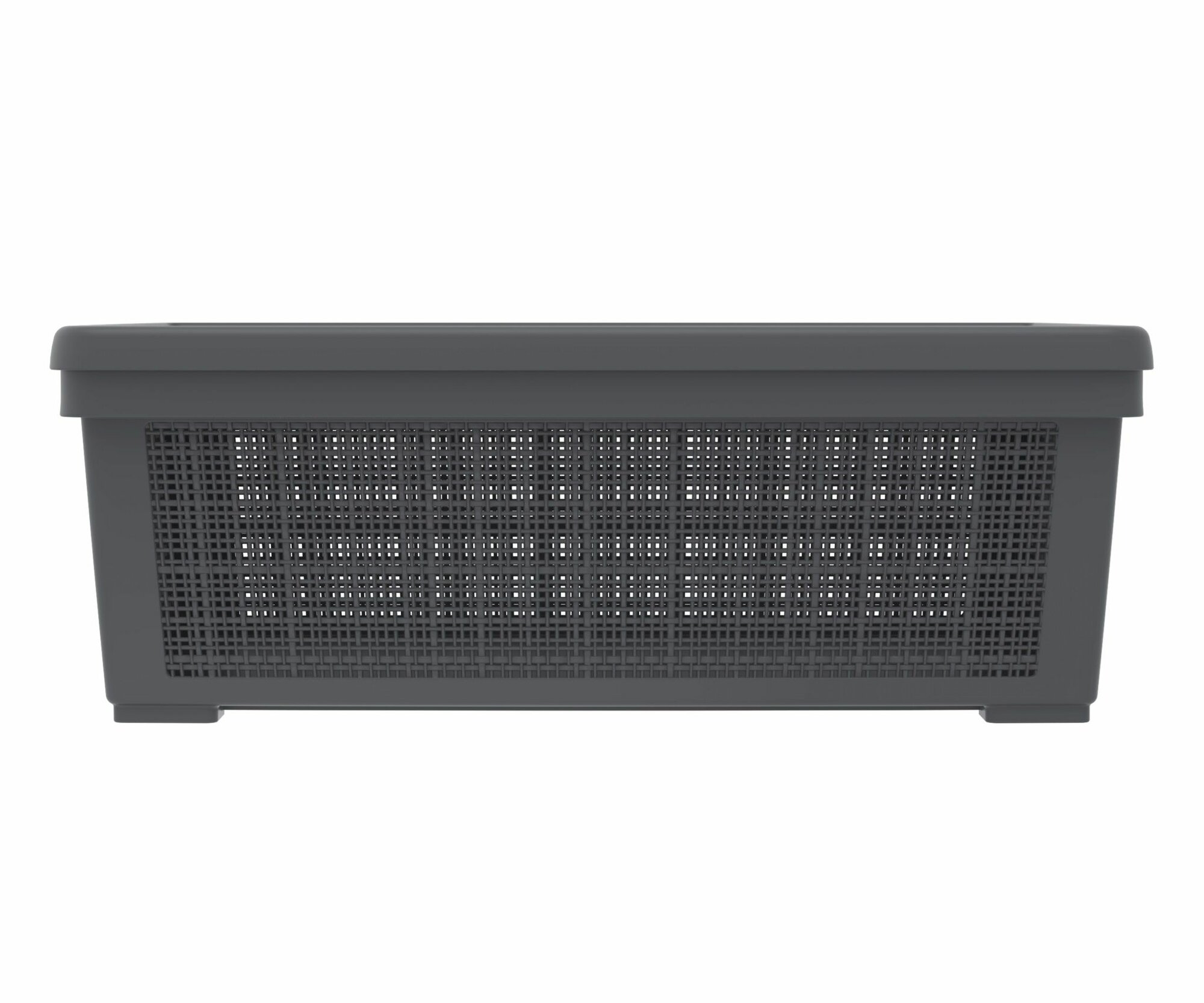 Дизайн корзины имитирует плетение, что придает ей естественный и уютный вид. Черный цвет графит позволяет корзине гармонично вписаться в любой интерьер.