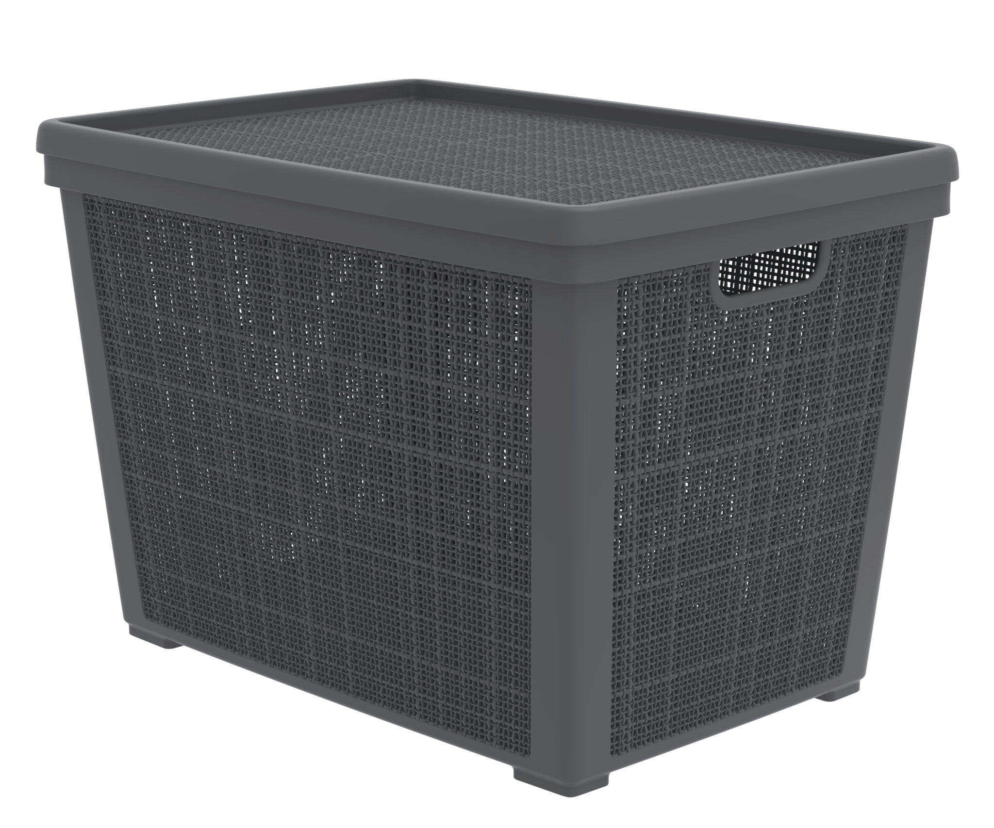 Дизайн корзины имитирует плетение, что придает ей естественный и уютный вид. Графитовый цвет корзины легко впишется в любой интерьер, а две удобные ручки по бокам обеспечивают комфортное использование и переноску корзины.