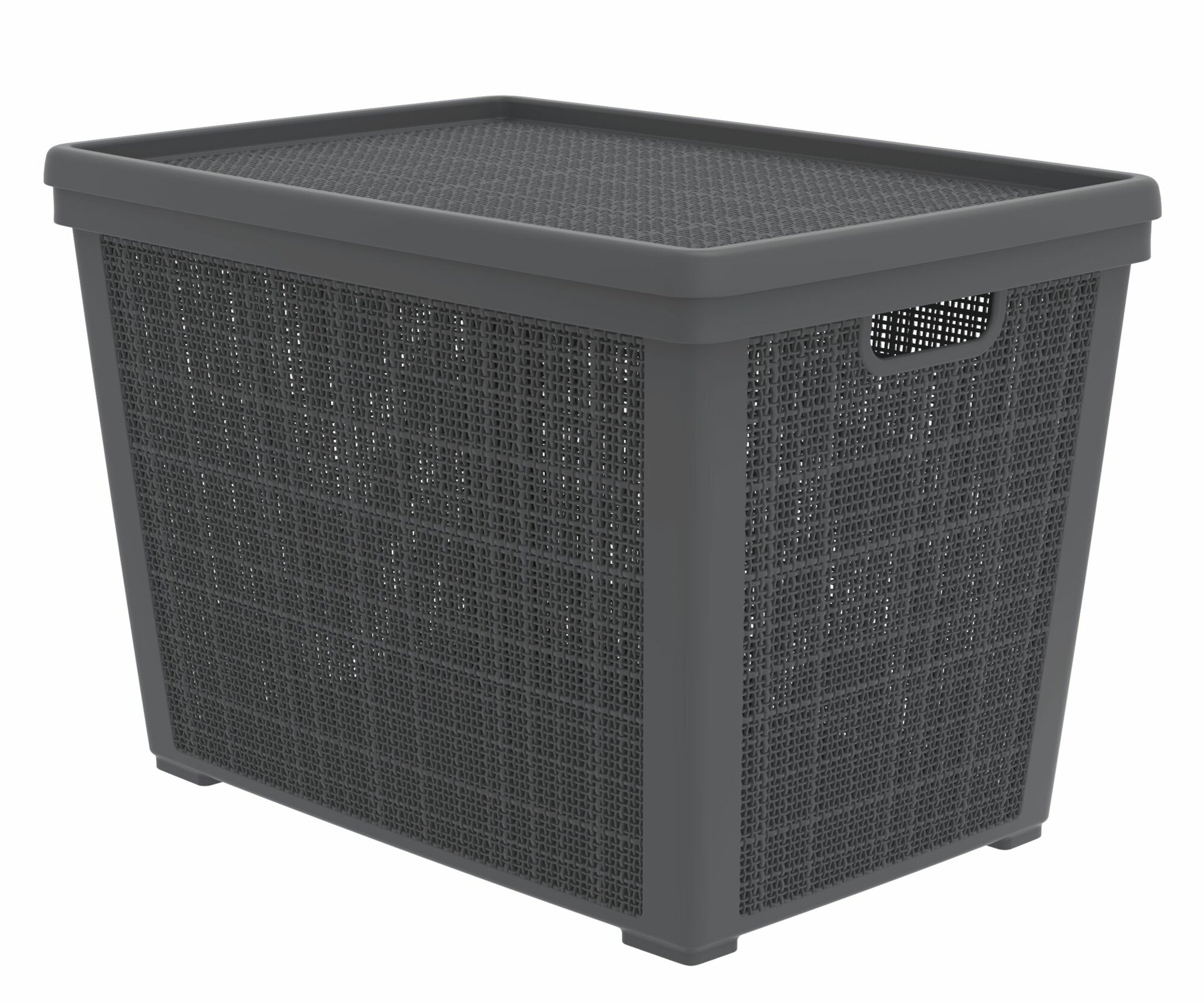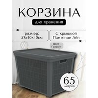 Корзина плетёная для хранения с крышкой «Лён» 65 л, 56,8×40×39,1 см, графит: сравнение цен, характеристики, фото, актуальное наличие и цены.