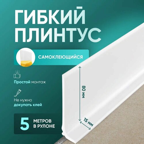 Плинтус гибкий напольный самоклеящийся, 5000х95 мм, 1 шт, белый: сравнение цен, характеристики, фото, актуальное наличие и цены.