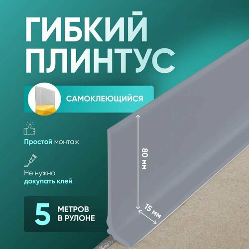 Плинтус гибкий напольный самоклеящийся, 5000х95 мм, 1 шт, светло-серый: сравнение цен, характеристики, фото, актуальное наличие и цены.