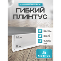 Гибкий плинтус напольный самоклеящийся, размеры: высота 50 мм, ширина 15 мм, длина 5 метра.