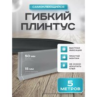 Гибкий плинтус напольный самоклеящийся, размеры: высота 50 мм, ширина 15 мм, длина 5 метра.