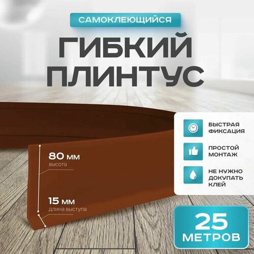Гибкий плинтус напольный самоклеящийся, размеры: высота 80 мм, ширина 15 мм, длина 25 метра.