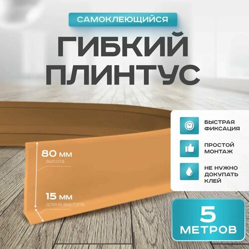 Гибкий плинтус напольный самоклеящийся, размеры: высота 80 мм, ширина 15 мм, длина 5 метра.
