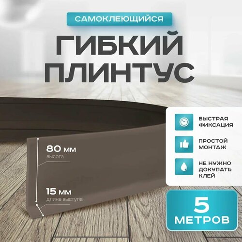 Гибкий плинтус напольный самоклеящийся, размеры: высота 80 мм, ширина 15 мм, длина 5 метра.