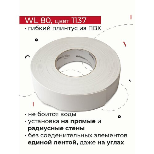 Купить Плинтус напольный гибкий WL80 50 метров, Белый с доставкой по всей России. Плинтус напольный гибкий WL80 50 метров, Белый: сравнение цен, характеристики, фото, актуальное наличие и цены.