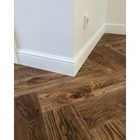 Самое главное преимущество этого плинтуса заключается в том, что он имеет толщину всего 1 сантиметр, что позволяет ему выглядеть очень аккуратно и эстетично, не торчит из-за наличника в отличии от 90% плинтусов стандартной толщины в 16 мм. Он также легко режется под углом 45 градусов, что упрощает процесс монтажа