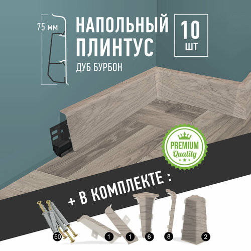 Плинтус напольный 1100 х 75 мм , 10шт , с кабель-каналом , цвет Дуб Бурбон: сравнение цен, характеристики, фото, актуальное наличие и цены.