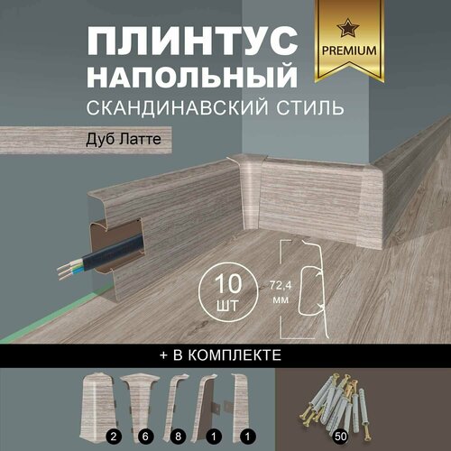 Плинтус напольный 1100 х 72,5 мм , 10шт , с кабель-каналом , цвет Дуб Латте: сравнение цен, характеристики, фото, актуальное наличие и цены.