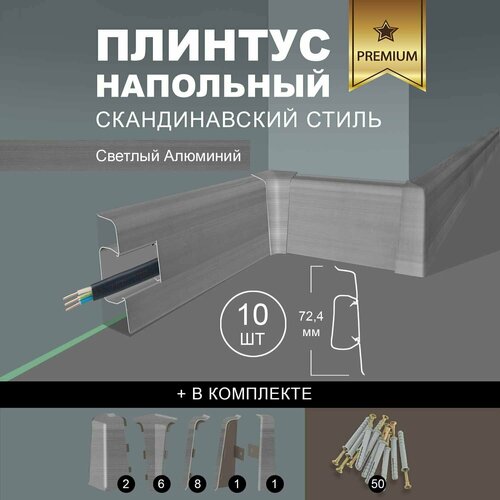 Плинтус напольный 1100 х 72,5 мм , 10шт , с кабель-каналом , цвет Светлый Алюминий: сравнение цен, характеристики, фото, актуальное наличие и цены.