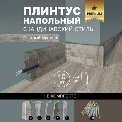 Плинтус напольный 1100 х 72,5 мм , 10шт , с кабель-каналом , цвет Светлый Мрамор: сравнение цен, характеристики, фото, актуальное наличие и цены.