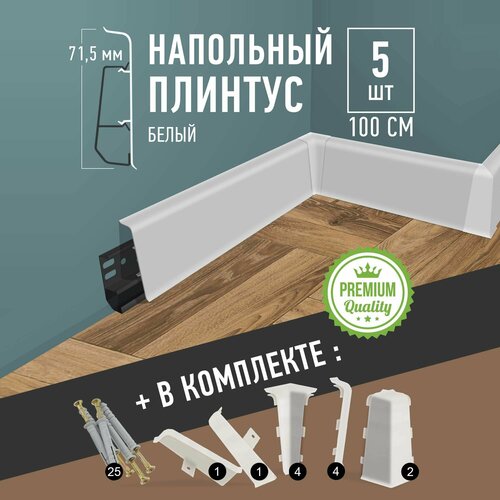 Купить Плинтус напольный, 5шт 1000×71,5 мм, с кабель-каналом , цвет Белый. с доставкой по всей России. Плинтус напольный, 5шт 1000×71,5 мм, с кабель-каналом , цвет Белый.: сравнение цен, характеристики, фото, актуальное наличие и цены.