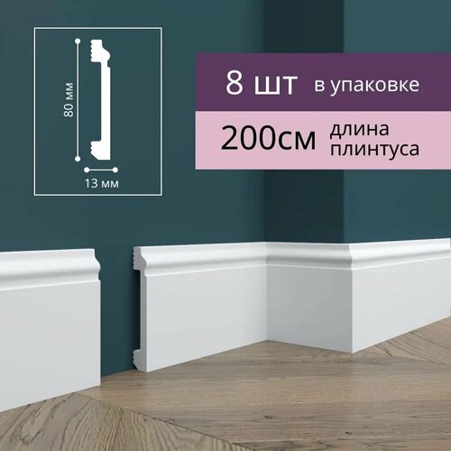 Поверхность: матовая Высота, см: 8 Длина, см: 200 Толщина, см: 1,3 Загрунтован: Нет. Влагостойкий: Да Под покраску: Да