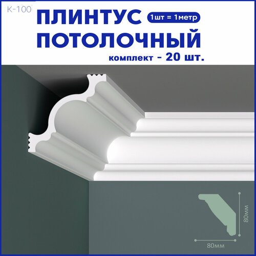 Плинтус потолочный K-100, комплект 20 шт. x 1м, 20 метров: сравнение цен, характеристики, фото, актуальное наличие и цены.