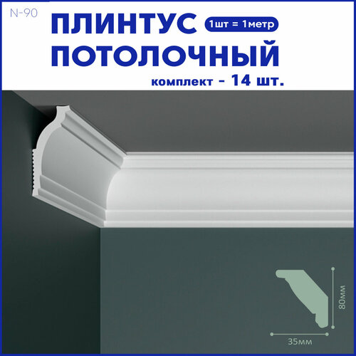 Плинтус потолочный N-90, комплект 14 шт. x 1м, 14 метров: сравнение цен, характеристики, фото, актуальное наличие и цены.