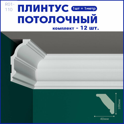 Плинтус потолочный R01-110, комплект 12 шт. x 1м, 12 метров: сравнение цен, характеристики, фото, актуальное наличие и цены.
