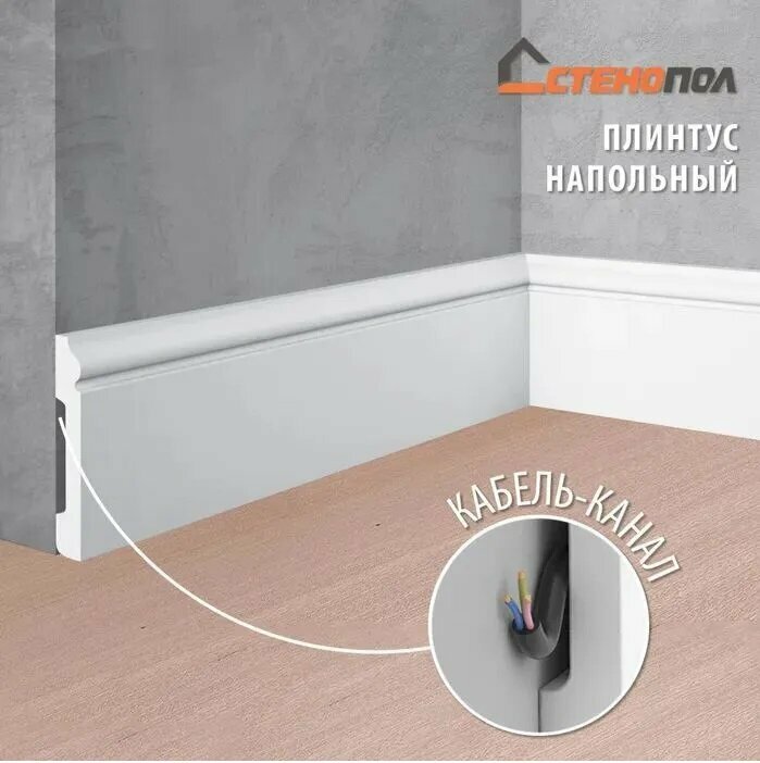 Плинтус Stenopol (Стенопол) C705, длина 2 метра, галтель, один из важных декоративных элементов, сглаживает границу между полом и стеной. Конструктивная особенность присутствие кабель канала. Изготавливается из современного, экологичного, дюрополимера. Обладает большей плотностью чем полистирол. Материал влагостойкий, не имеет запаха, легкий. Не подвержен деформации и усадки после монтажа. Повышенная ударопрочность и долговечность. Цвет белый, под покраску. Краска рекомендуется на водоэмульсионной основе, без растворителей. Подходит для монтажа: в гостиную, спальню, детскую, прихожую, кухню, ванную. Подойдет в любой из типов интерьера: ампир, барокко, версаль, викторианский стиль, классический стиль и в современные дизайнерские отделки. Длина 2000, толщина 13, высота 79 мм 8шт.