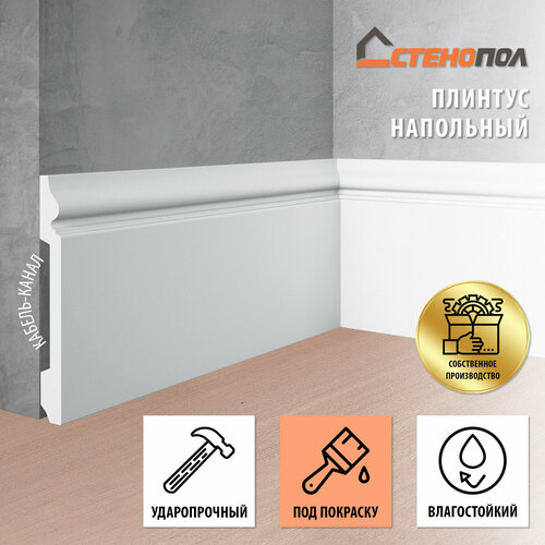 Плинтус Stenopol (Стенопол) C7118, длина 2 метра, галтель, один из важных декоративных элементов, сглаживает границу между полом и стеной. Конструктивная особенность присутствие кабель канала. Изготавливается из современного, экологичного, дюрополимера. Обладает большей плотностью чем полистирол. Материал влагостойкий, не имеет запаха, легкий. Не подвержен деформации и усадки после монтажа. Повышенная ударопрочность и долговечность. Цвет белый, под покраску. Краска рекомендуется на водоэмульсионной основе, без растворителей. Подходит для монтажа: в гостиную, спальню, детскую, прихожую, кухню, ванную. Подойдет в любой из типов интерьера: ампир, барокко, версаль, викторианский стиль, классический стиль и в современные дизайнерские отделки. Длина 2000, толщина 20, высота 138 мм 5шт.