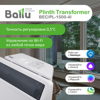 Плинтусный конвектор с Wi-Fi Ballu Plinth Transformer BEC/PL-1500-4I, 1.5 кВт, до 20 м2, инверторное управление