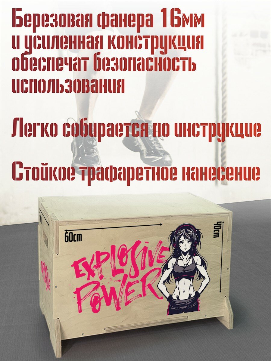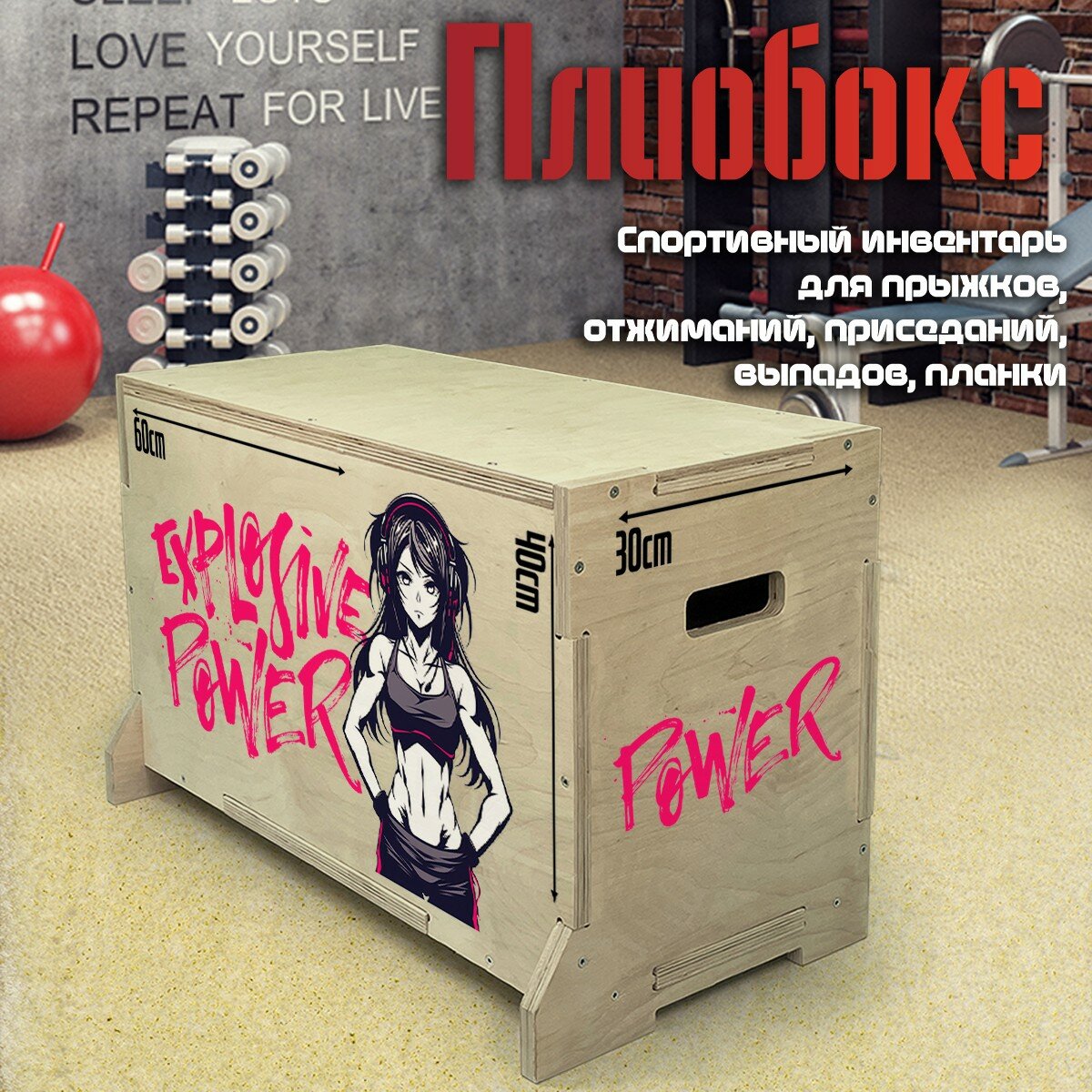 Купить Плиобокс УФ / Тумба для запрыгиваний / Плиометрический бокс с принтом Аниме девушка (спорт, гантели, мотивация, железо) — 121 с доставкой по всей России.