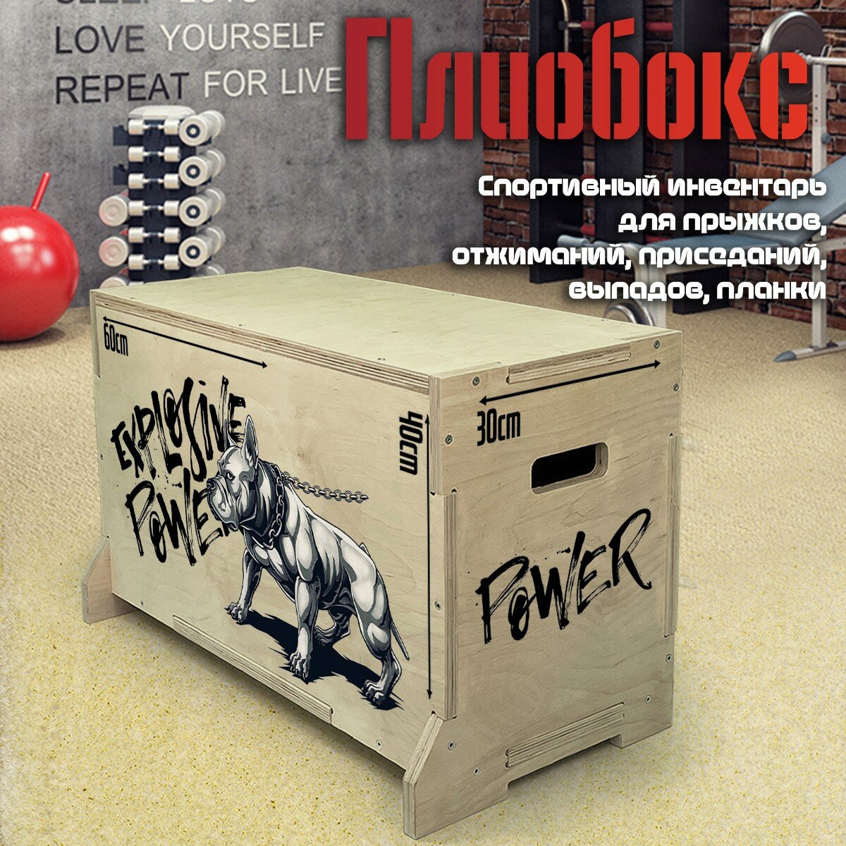 Купить Плиобокс УФ / Тумба для запрыгиваний / Плиометрический бокс с принтом Бультерьер (спорт, гантели, мотивация, железо) — 102 с доставкой по всей России.