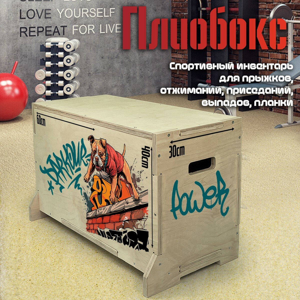 Купить Плиобокс УФ / Тумба для запрыгиваний / Плиометрический бокс с принтом Бультерьер (спорт, паркур, мотивация, граффити) — 106 с доставкой по всей России.