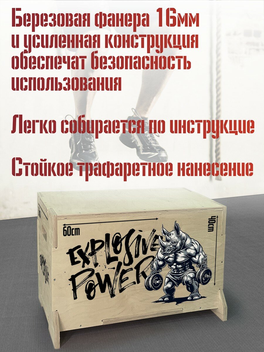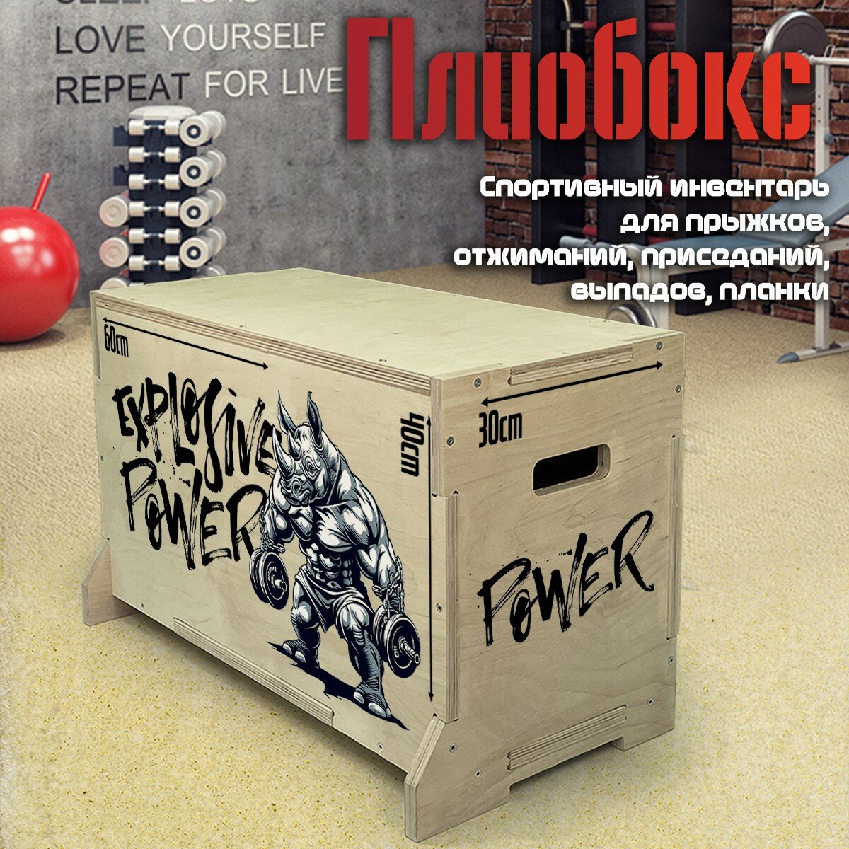 Купить Плиобокс УФ / Тумба для запрыгиваний / Плиометрический бокс с принтом Носорог (спорт, гантели, мотивация, железо) — 103 с доставкой по всей России.