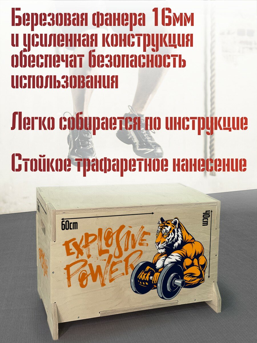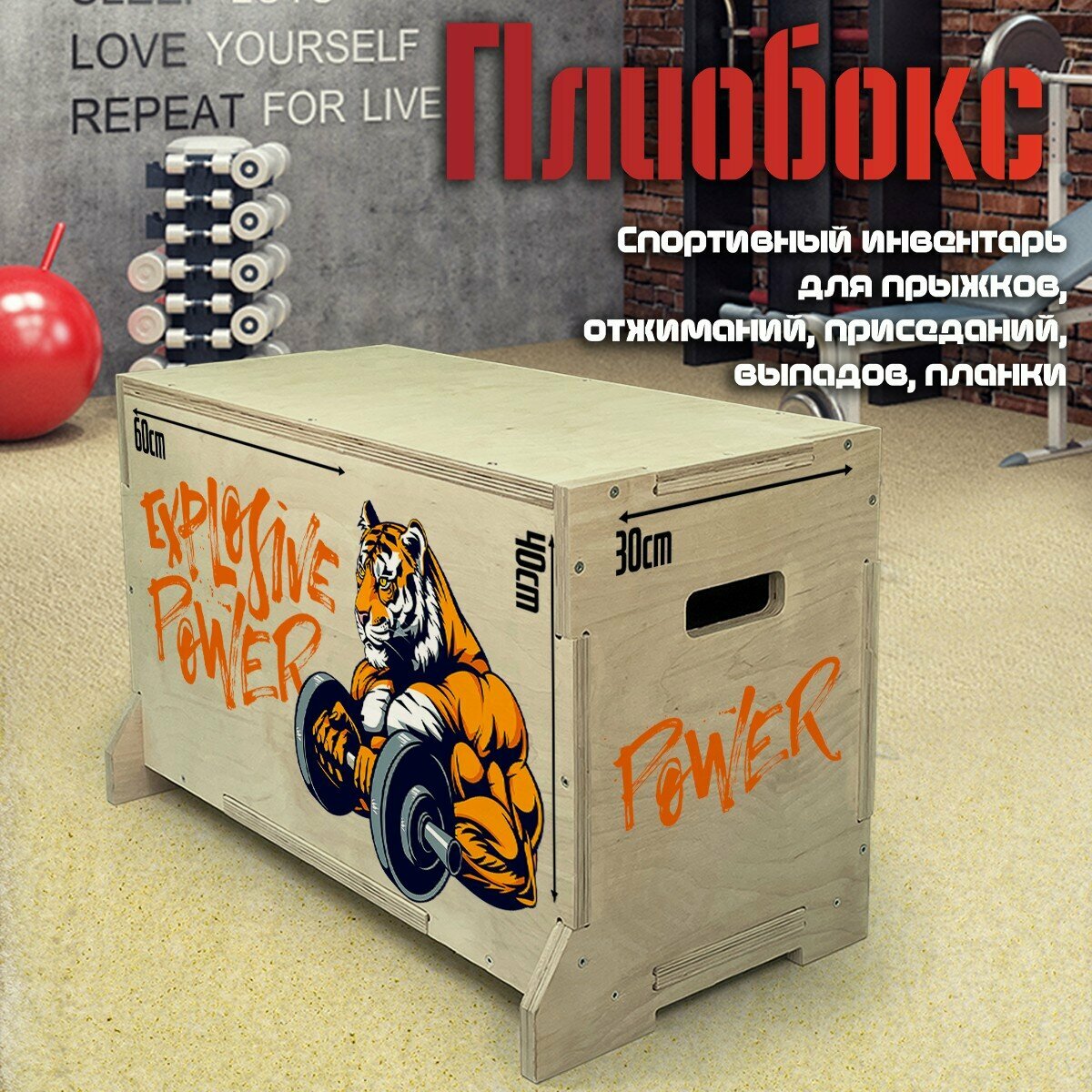 Купить Плиобокс УФ / Тумба для запрыгиваний / Плиометрический бокс с принтом Тигр (спорт, гантели, мотивация, железо) — 100 с доставкой по всей России.