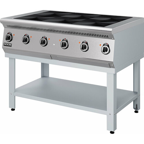 Электрическая плита Марихолодмаш ПЭ67П предназначена для приготовления первых, вторых и третьих блюд, а также для жарки полуфабрикатов из мяса, рыбы, овощей и выпечки мелкоштучных изделий на предприятиях торговли и общественного питания. Корпус, столешница и лицевая часть выполнены из нержавеющей стали, конфорки - из чугуна. Особенности: Все регуляторы расположены на передней панели Регулируемые по высоте ножки Без духовки Без воздуховода Высокая безопасность, предохранение от ожогов Большие конфорки, позволяющие разместить даже самые крупные кастрюли Легкость в чистке Экологичность Упаковка в деревянную обрешетку, поддон Допустима транспортировка в два яруса Дополнительные характеристики: Площадь жарочной поверхности: 0,54 м2 Температура рабочей поверхности конфорок: 480 °С Мощность каждой конфорки: 2,8 кВт Время разогрева до максимальной температуры: 25 мин Температура срабатывания аварийного терморегулятора от перегрева: 324 °С Количество переключателей мощности: 6 Допустимая нагрузка на одну конфорку: 20 кг Размеры в упаковке: 1315х900х1150 мм Опции (заказываются отдельно): Комплект воздуховода ВПЭ из нержавеющей стали Внимание! На фото аналогичная модель с воздуховодами, которые в комплект поставки не входят и приобретаются отдельно.