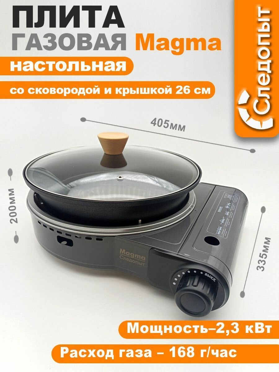 Купить Плита настольная газовая Следопыт-Magma со сковородой и крышкой 26 см с доставкой по всей России.