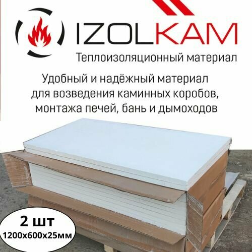 Плита огнезащитная теплоизоляционная Изолкам 25 (2шт) – это высококачественный материал для теплоизоляции, созданный на основе силиката кальция. Он обеспечивает надежную защиту от высоких температур и огня, делая его идеальным решением для изоляции дымоходов, каминов и других высокотемпературных зон.