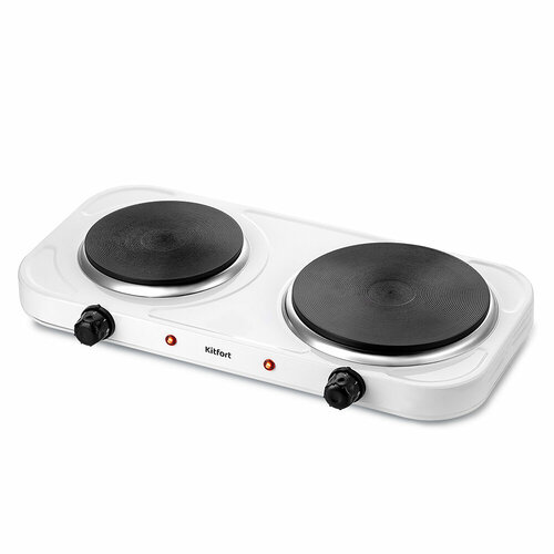 Готовить – это удовольствие! Электрическая плита Kitfort KT-174 практична и экономична. Плавная регулировка температуры, позволяет настроить нагрев под любые блюда и готовить их вкусно, быстро и абсолютно безопасно! Управление регуляторами Включение, выключение и настройка нагрева осуществляется с помощью регуляторов температуры. Для каждой конфорки установлен свой термостат. Поворачивая регулятор по часовой стрелке, вы включаете нагрев и увеличиваете его. Всего у плиты 5 уровней нагрева. Защита от перегрева Мощность левой конфорки составляет 1000 Вт, а правой 1500 Вт. Во время готовки, в случае перегрева, в плите сработает термопредохранитель, который выключит полностью нагрев. Для любой металлической посуды Прямой нагрев позволяет использовать любую металлическую посуду, даже алюминиевые сковороды. Рекомендуется выбирать посуду с плоским дном. Плита выдерживает вес не более 10 кг. Для вашей безопасности Плита оборудована противоскользящими ножками, придающими ей устойчивое положение на поверхности. На обратной стороне устройства есть вентиляционные отверстия, они способствуют быстрому охлаждению устройства во время работы и после её завершения. Лёгкая уборка! Корпус и конфорки плиты выполнены из металла, благодаря чему после приготовления еды вы можете с лёгкостью убрать плитку от остатков пищи и прочих загрязнений. Практична и компактна! На плите можно готовить в любом месте, где есть электричество, что делает устройство универсальным. Плита идеально подойдёт для приготовления блюд в домашних условиях или на даче. Она компактная и проста в использовании.