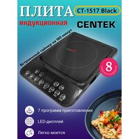 Плита индукционная, плитка, компактная, функциональная, 2000Вт, CT-1517 Black Плитка индукционная Centek CT-1517 Black <2000Вт> 8 настр. мощности, 7 программ, таймер, LED-дисплей