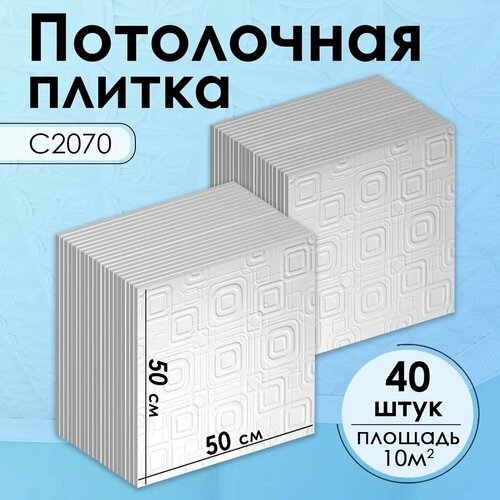 Плитка потолочная, Экструдированная, С2070 «Белый», 50×50 см, 10кв. м, 40 шт.: сравнение цен, характеристики, фото, актуальное наличие и цены.