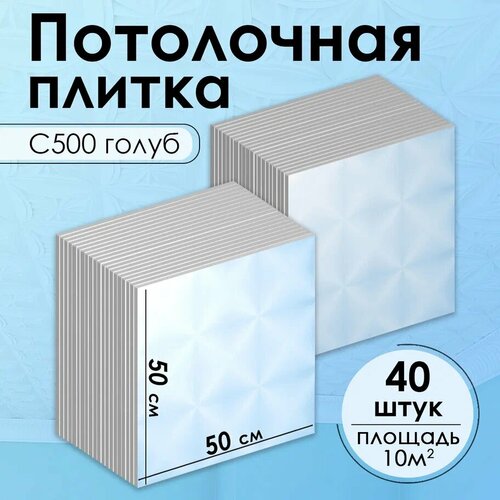 Плитка потолочная, Экструдированная, С500 «ГолубШелк», 50×50 см, 10кв. м, 40 шт.: сравнение цен, характеристики, фото, актуальное наличие и цены.